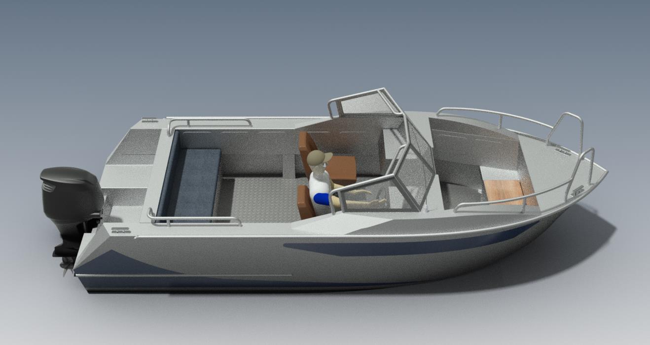 Катер универсальный (прогулочный, рыболовный). Основные технические характеристики: Длина корпуса - 5,50 м Ширина корпуса - 2,17м Тип двигателя - подвесной мотор Материал корпуса - АМг5